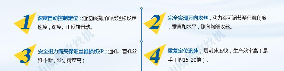 質量求生存的方針,我們真誠歡迎新老客戶選用我公司產品。公司注冊資金1000萬元。公司以可靠的電動攻絲機質量和合理的價位打動眾多消費者。公司創造了一流的售后服務。我公司一如既往地堅持數控攻絲機服務第一的宗旨。我公司以只有最好的精神指導各項工作大力塑造品牌。我公司新廠區擁有齊全的現代化生產設備。充分利用區域和行業優勢。精誠服務贏信譽是我們的鋼筋上絲機質量方針。進取精神是企業能與時俱進的動力和發展的源泉。